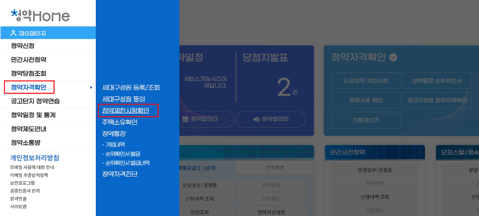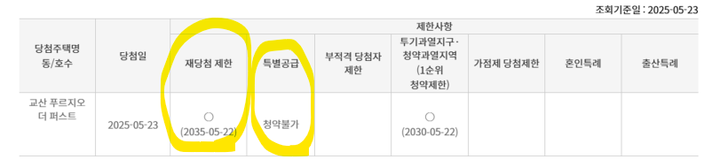 ※ 일반공급 당첨이다? = 재당첨제한에 동그라미가 뜸!!