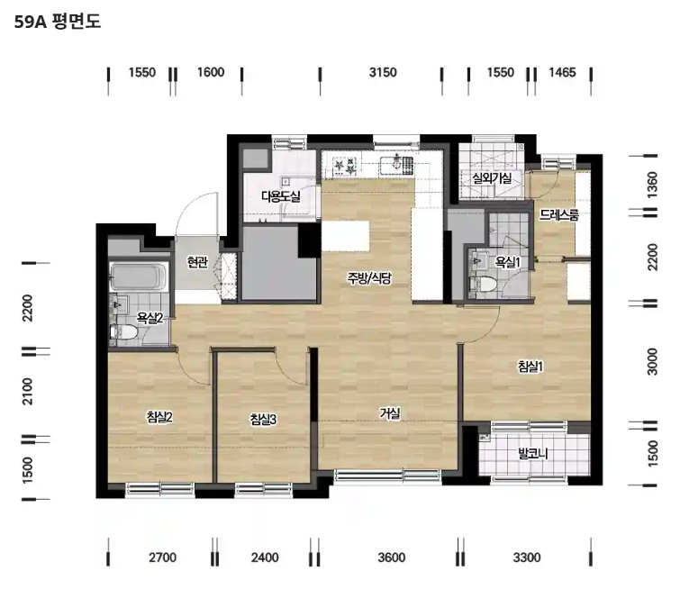 전용 59㎡~234P㎡ 특대형 평수 다수 보유!