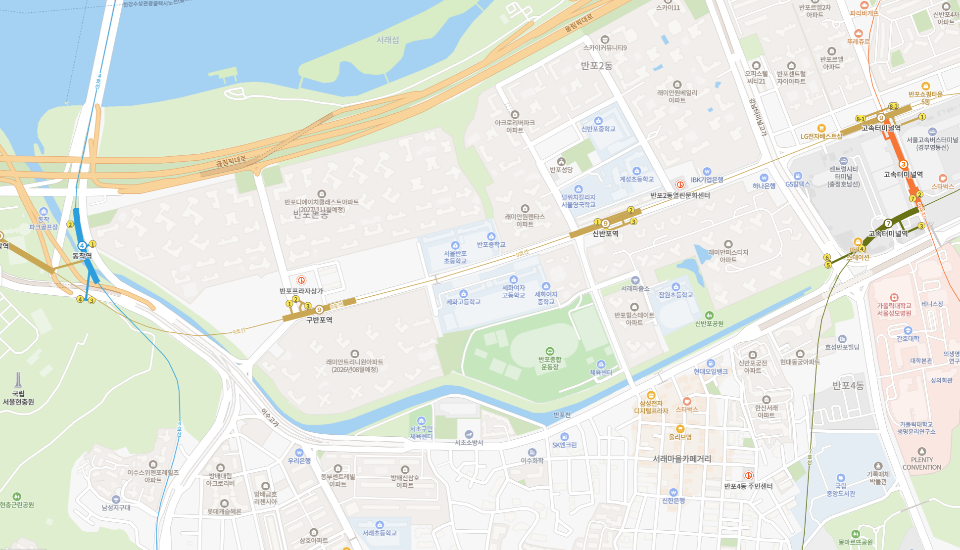 - 인프라: 센트럴시티, 신세계백화점, 반포한강공원