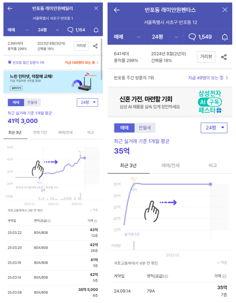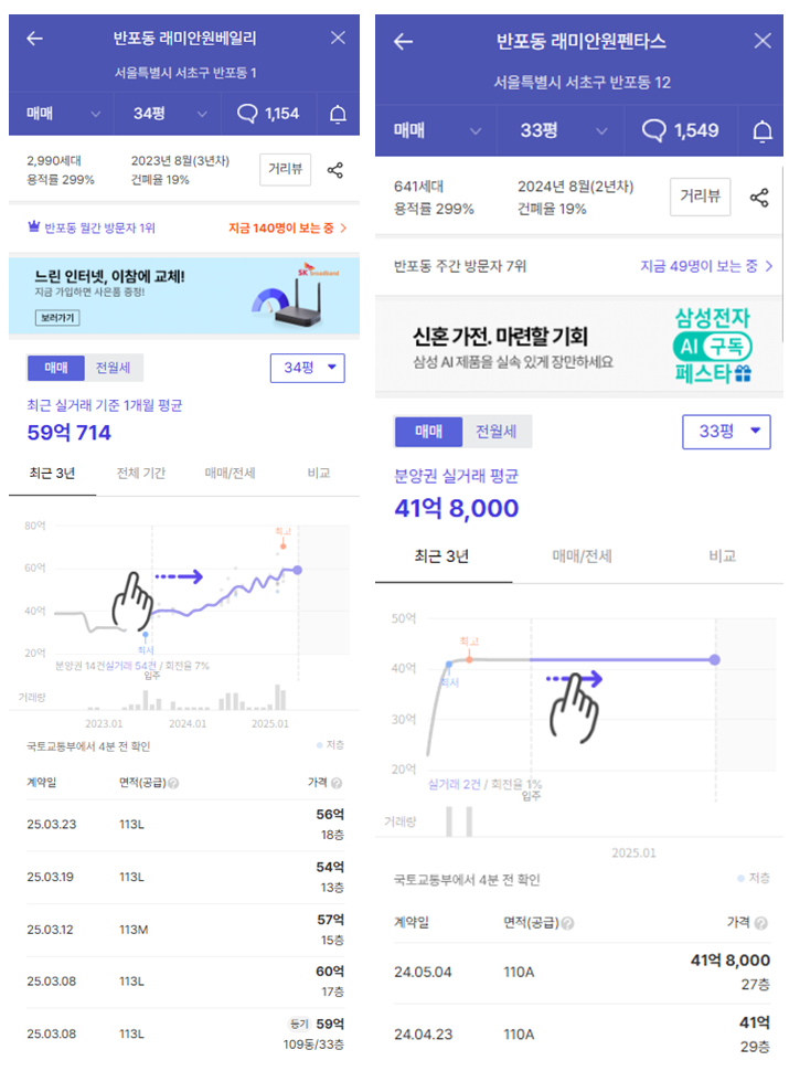 - 반포 래미안원베일리 59㎡ 실거래가: 41.3억 원