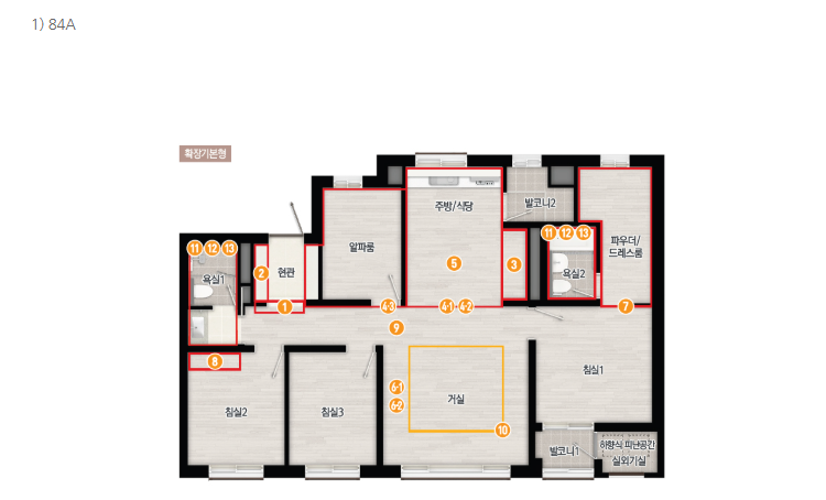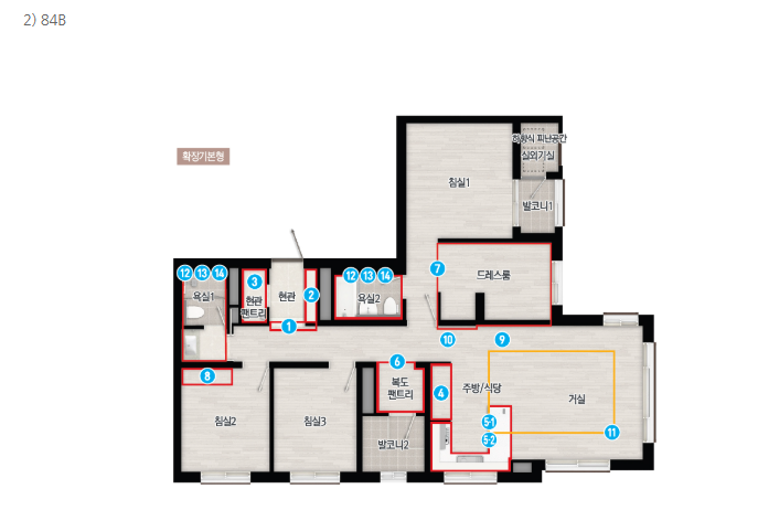- 전용 84㎡: 4베이 + 팬트리 + 드레스룸 포함, 실거주 선호 최고
