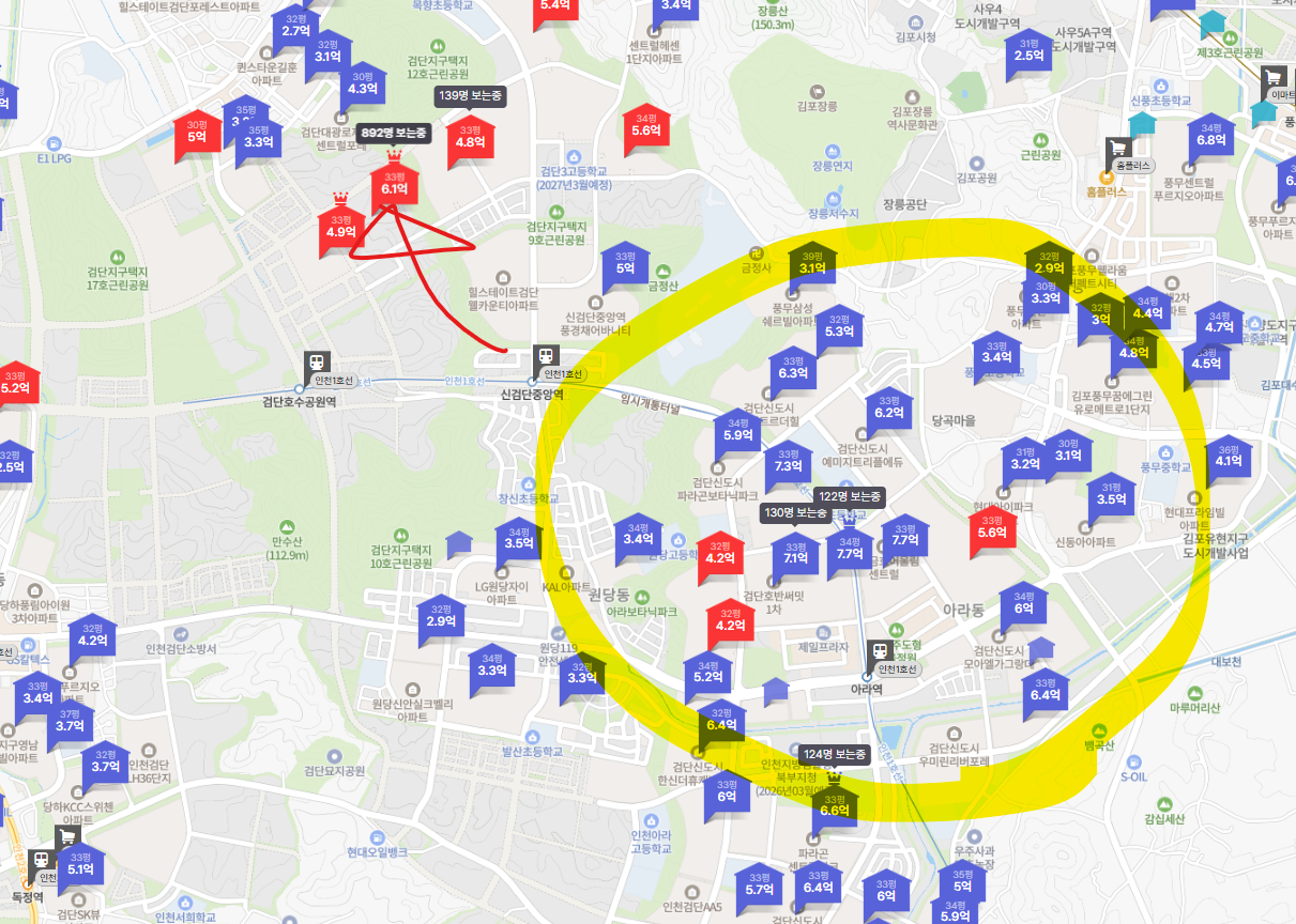 근접한 지하철역이 달라서 시세차익 계산에서는 제외했지만, 아랫동네인 아라역은 현재 시세 7.7억까지 거래되고 있습니다. 장기적으로 보았을때는 상승곡선을 탈 수 있는 지역임은 틀림없습니다.