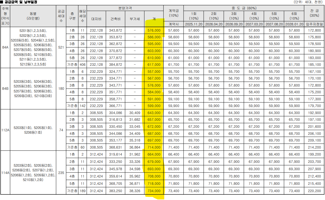 - 84A : 특별공급 335세대 + 일반공급 185세대