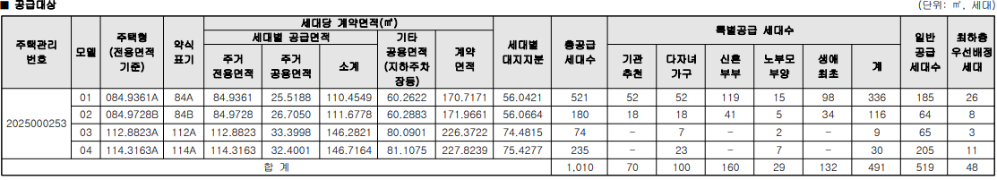 - 112A : 특별공급 9세대 + 일반공급 65세대