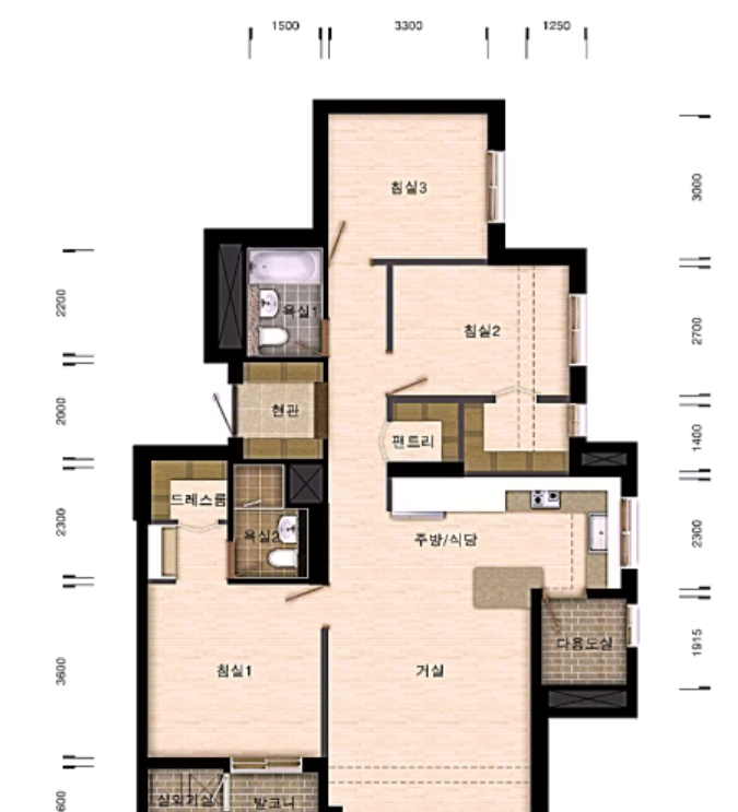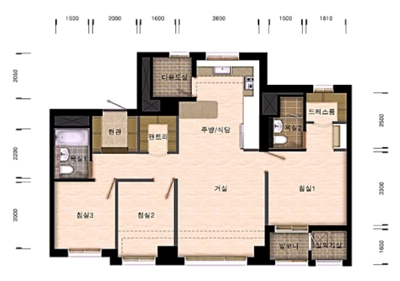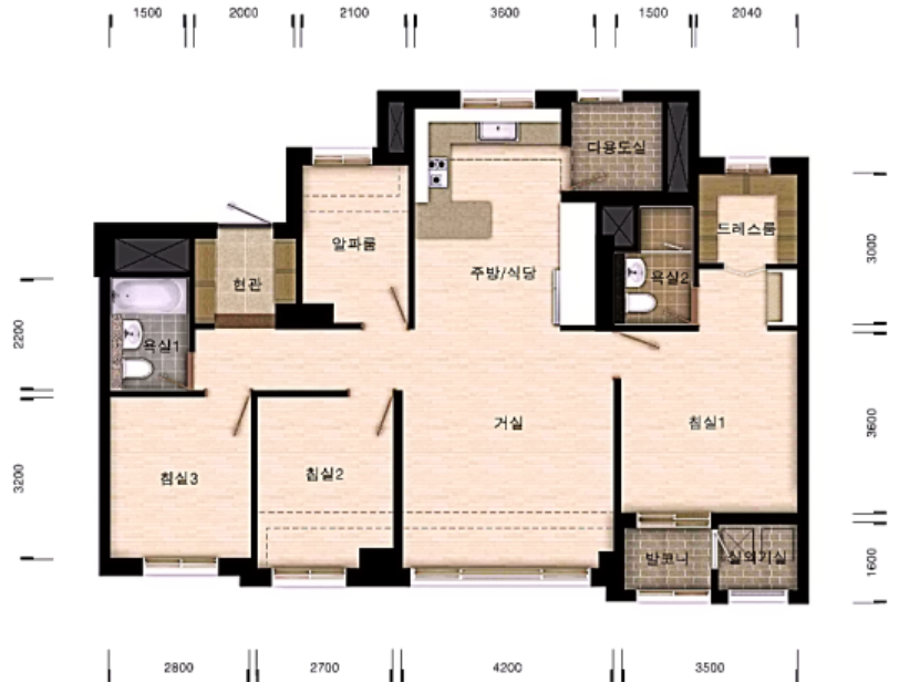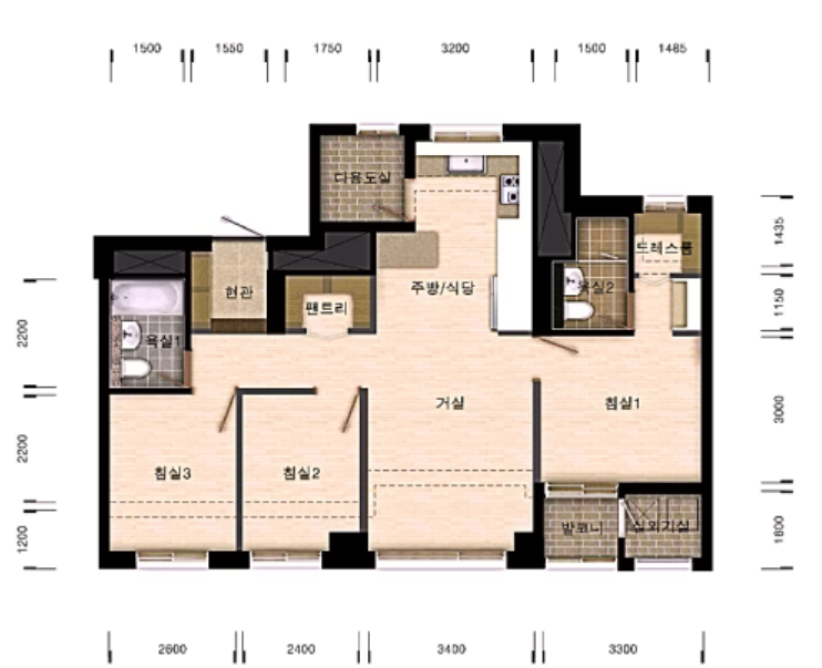 실거주 수요를 고려해 방 3, 욕실 2 구조가 기본이 될 것으로 보입니다.
